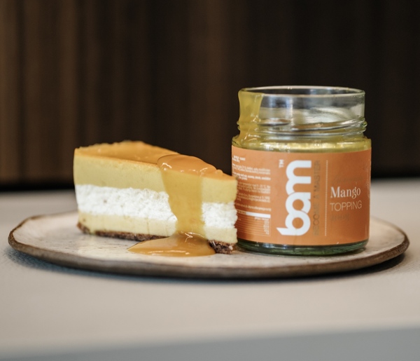 Une fois le gâteau refroidi, étalez le glaçage sur le gâteau et décorez avec des tranches de mangue pour faire ressortir encore plus la saveur de la mangue.