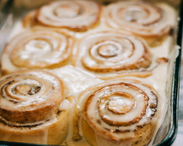 Placer la pâte sur un plan de travail fariné et, à l''aide d''un rouleau à pâtisserie légèrement fariné, étaler la pâte en un rectangle de 25×35 cm. Badigeonner la pâte de beurre ramolli (plus il est mou, plus il est facile à étaler). Mélanger la cassonade et la cannelle et en saupoudrer la pâte. Roulez-la fermement pour lui donner la forme d''une bûche. À l''aide d''un couteau très aiguisé, coupez-la en 12 disques supplémentaires. Disposez les rouleaux sur la plaque de cuisson préparée. Faites cuire les rouleaux à la cannelle pendant 22 à 26 minutes, jusqu''à ce que les bords soient légèrement dorés. Si vous remarquez que le dessus brunit trop rapidement, couvrez la plaque de cuisson avec du papier d''aluminium et poursuivez la cuisson. Retirez la plaque du four et placez les roulés à la cannelle sur une grille pendant que vous préparez le glaçage.
